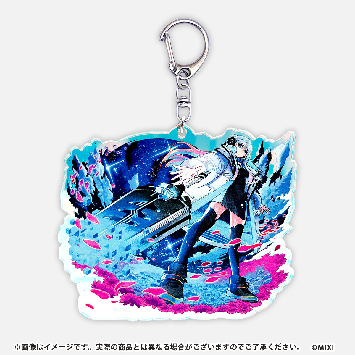 一般的なキーホルダーと比べてひと回り大きな仕様で、キャラクターの魅力がより際立つアイテムとなっています。素材には、ネオ:レゾナンス・モード MVの印象に合わせて優しく光を反射するオーロラ調のメタリック素材を採用。