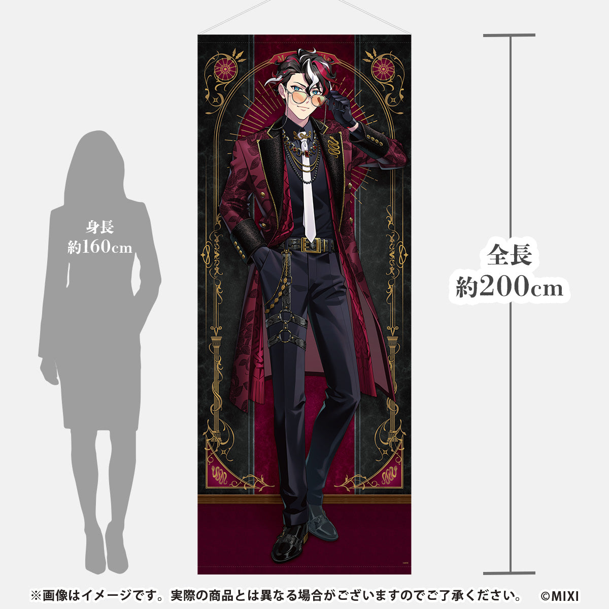 圧倒的な没入感で描き下ろしモンテ・クリストの魅力を味わえる、等身大タペストリーが登場。立った姿を自然に感じられる構図と、床と壁の境界を意識した設計により、まるでそこにキャラクターがいるかのようなリアルな空間演出を実現しました。背景装飾をあえて抑えることで、モンテ・クリストの表情や佇まいにじっくり向き合える“鑑賞特化”の仕上がりに。自分の部屋をはじめ、推し活スペースやイベント装飾の主役にもぴったりです。