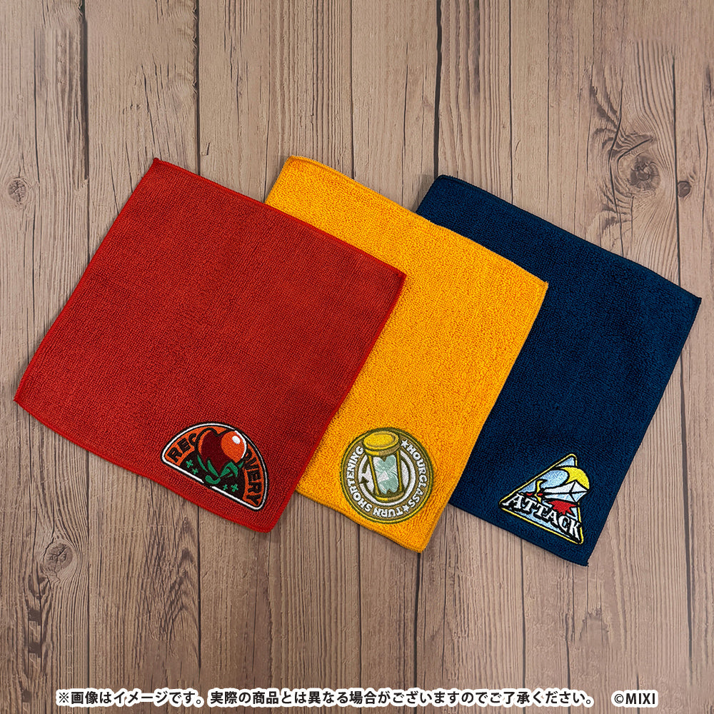 ステージアイテム「砂時計」の刺繍ワッペンが縫い付けられているハンドタオルです。