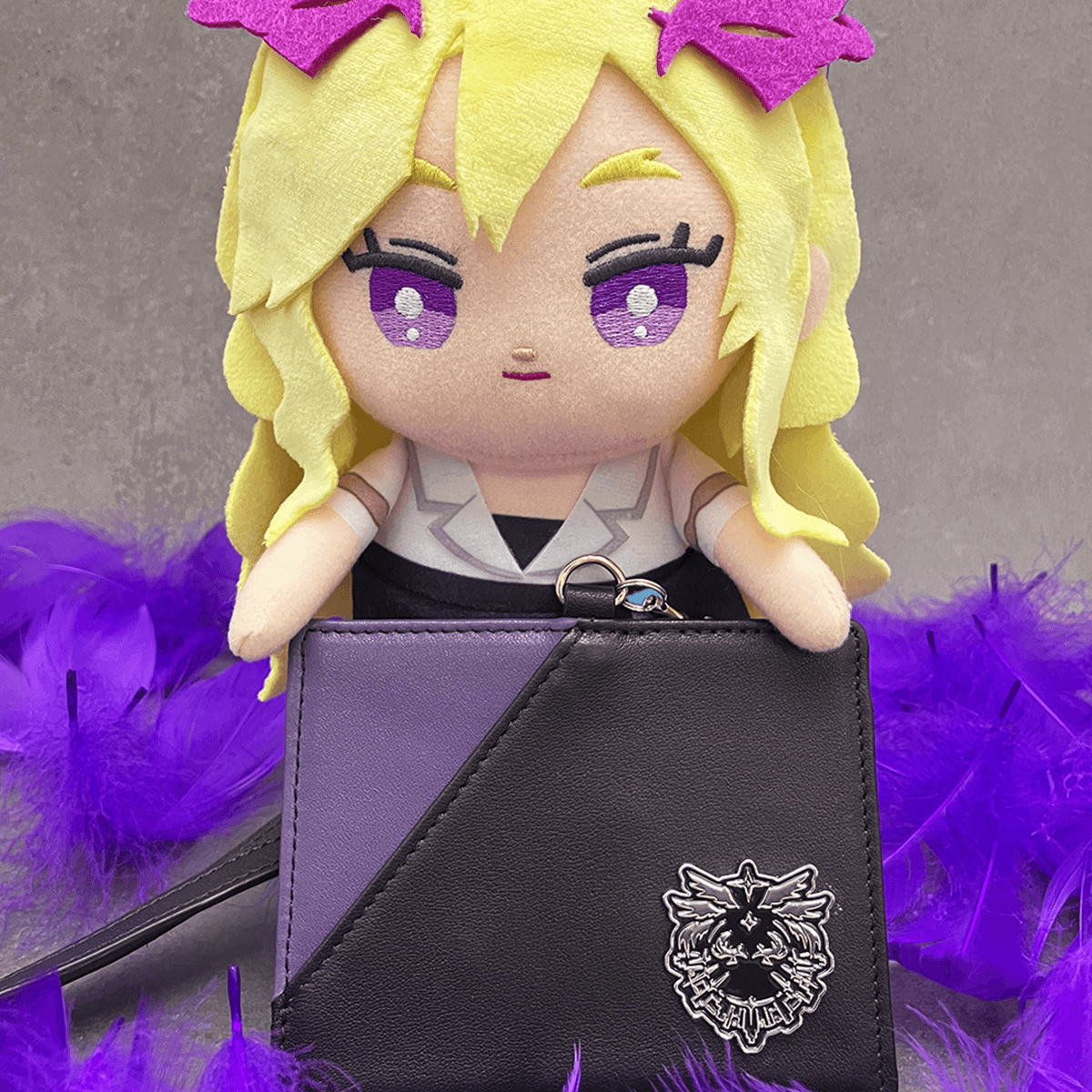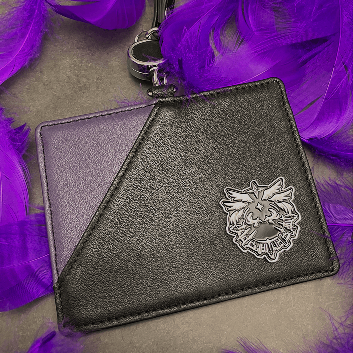 玉座に腰掛けたルシファーの存在感をイメージした、新たなモチーフデザインをメタル素材のレリーフで表現し、高級感のあるレザーで仕立てたパスケース です。レザー部分はブラックにパープルの切り替えでバイカラーになっておりスタイリッシュな印象です。
