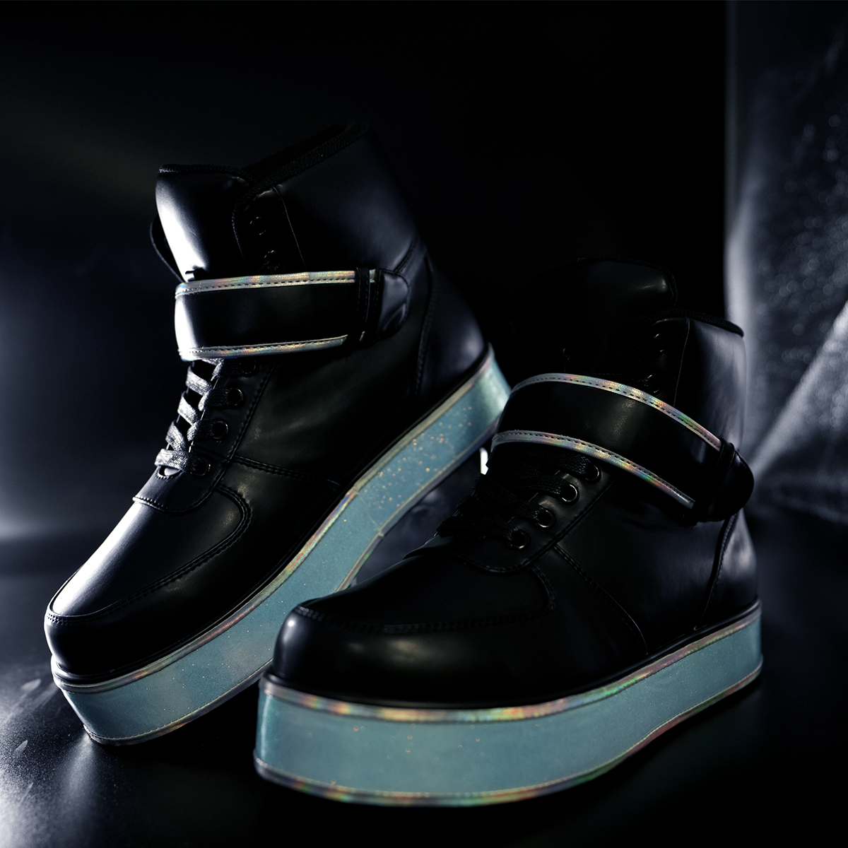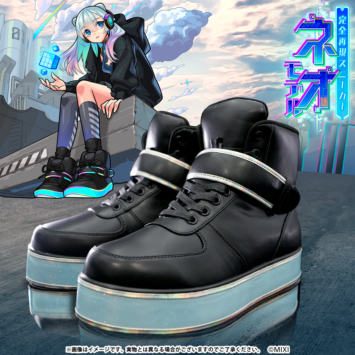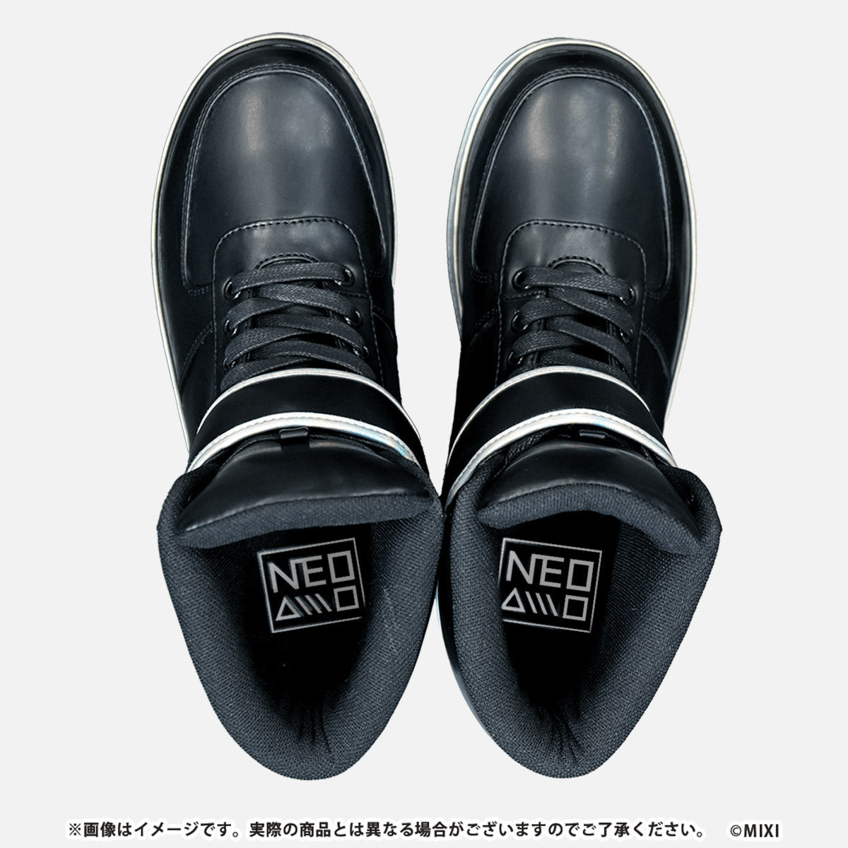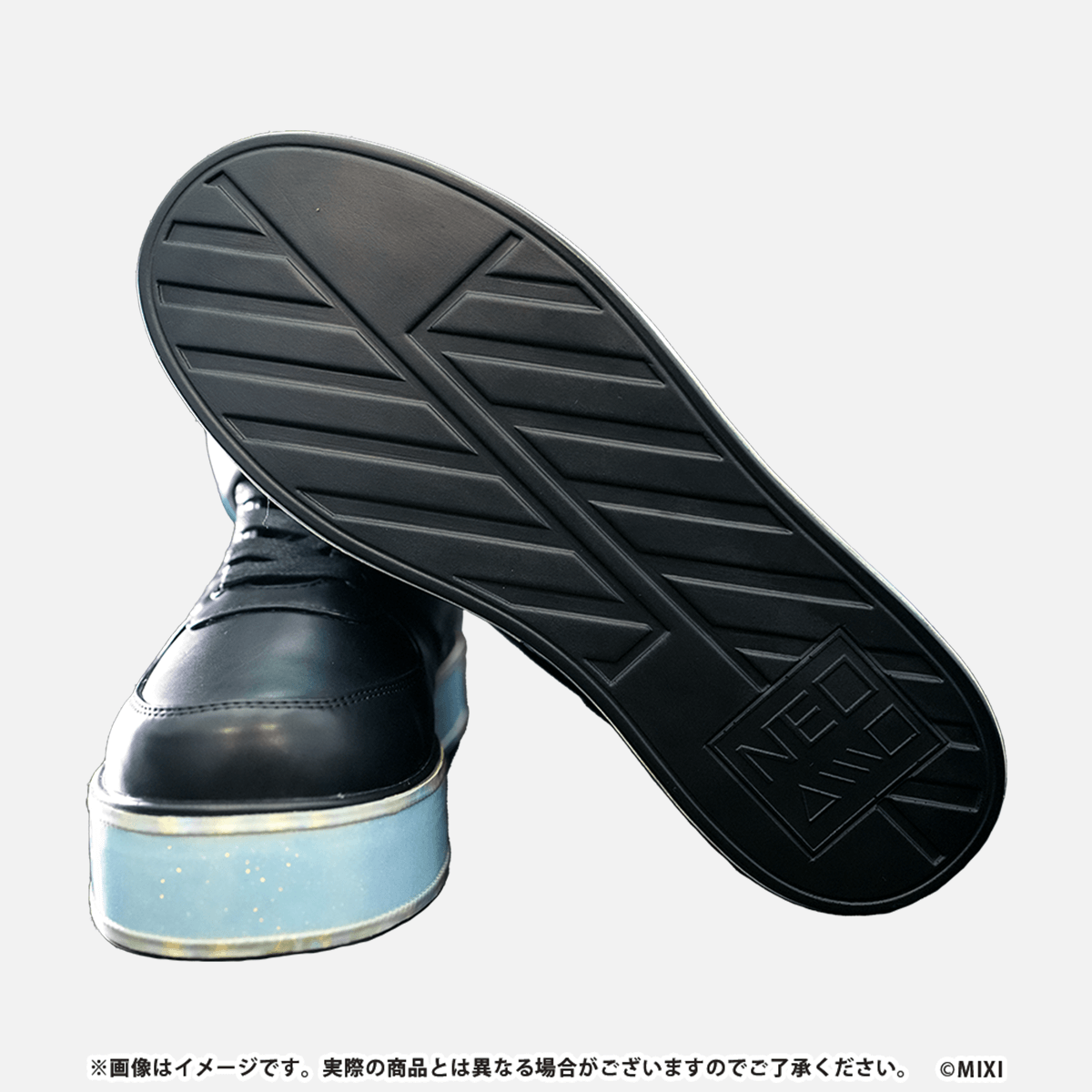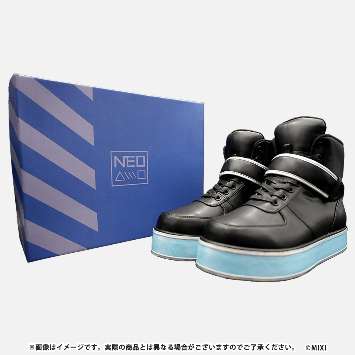 オリジナル専用BOXに入ったスニーカーは、ネオが着用しているものと同様ハイカットでソール側面やベルト部分にはオーロラ加工が施されています。