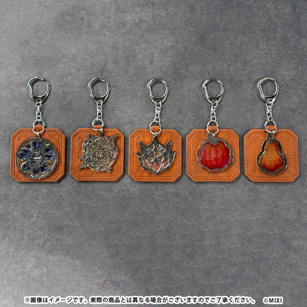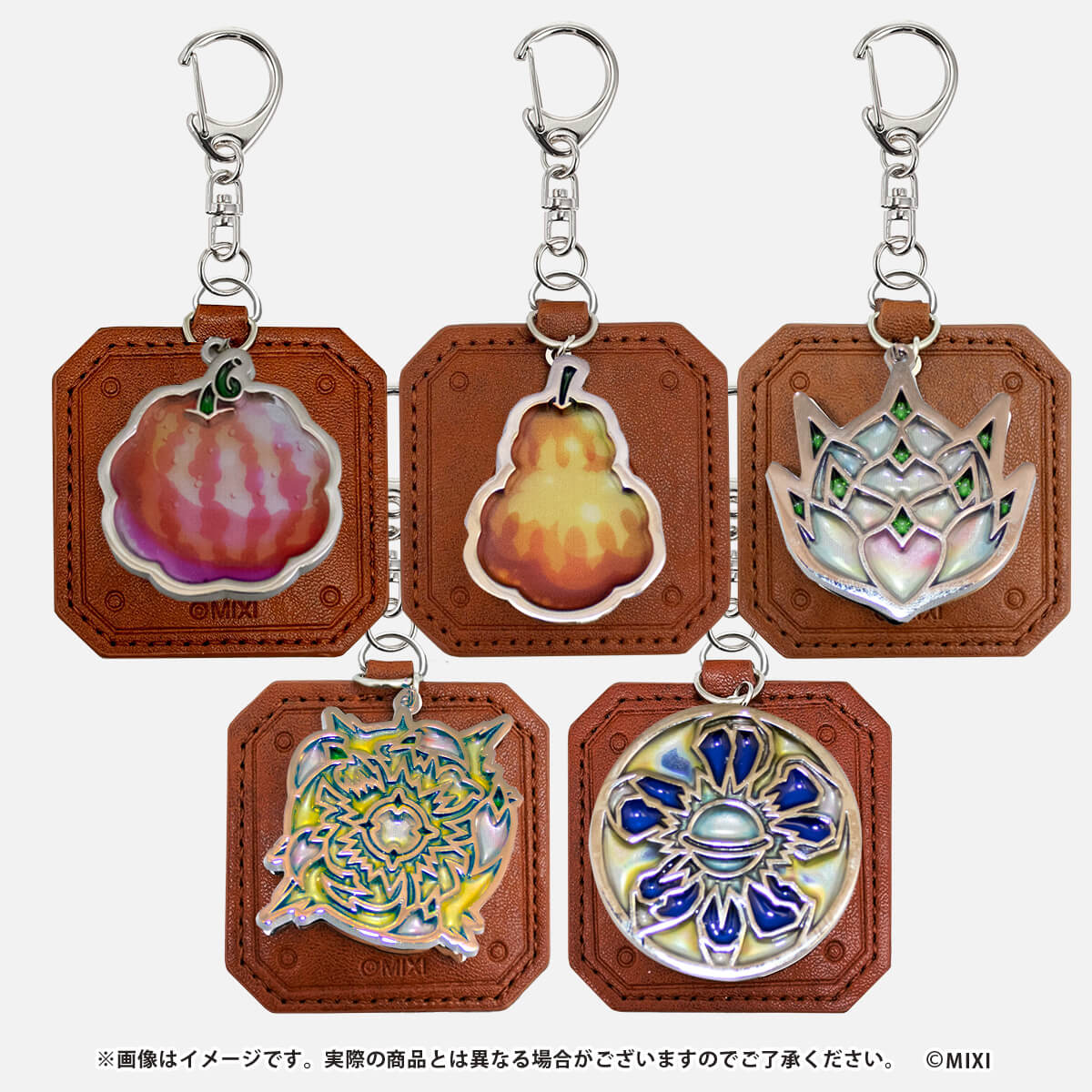 わくわくの実をステンドグラスのように表現したメタルパーツと、金の種が型押しデザインされた合皮パーツを組み合わせた豪華仕様のキーホルダー です。特級ELの実もラインナップされた全5種です。